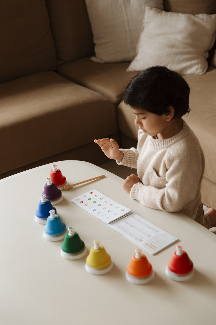 Dzwonki DingdangBu to wspaniały sposób na wprowadzenie maluchów w świat muzyki. Wystarczy jedno naciśnięcie, aby każdy dzwonek zagrał idealnie dostrojoną nutę diatoniczną! Za pomocą zaledwie kilku dzwonków dzieci mogą stworzyć własną mini orkiestrę i tworzyć prawdziwe melodie od samego początku – bez konieczności stosowania techniki. To przyjemny i intuicyjny początek świata muzyki.