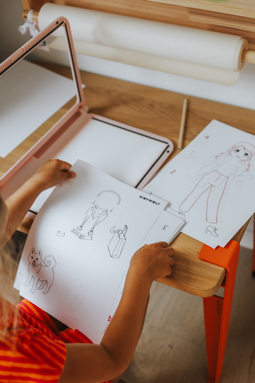 Z KidyDraw-Pro Fashion dzieci stają się prawdziwymi początkującymi projektantami mody. Dzięki pomysłowemu systemowi szablonów mogą łączyć sylwetki, stroje, akcesoria i wzory bez końca – ponad 1000 możliwych kombinacji, zupełnie jak w prawdziwym studiu mody. KidyDraw-Pro oferuje możliwość korzystania z gotowych szablonów, a także tworzenia własnych ilustracji. Dowolne inspiracje wystarczy umieścić na ekranie tabletu, podświetlić i przerysować. Zabawka wspiera rozwój koordynacji wzrokowo-ruchowej, koncentracji i pewności siebie dziecka, a jednocześnie ogranicza czas spędzany przed ekranem w sposób konstruktywny.